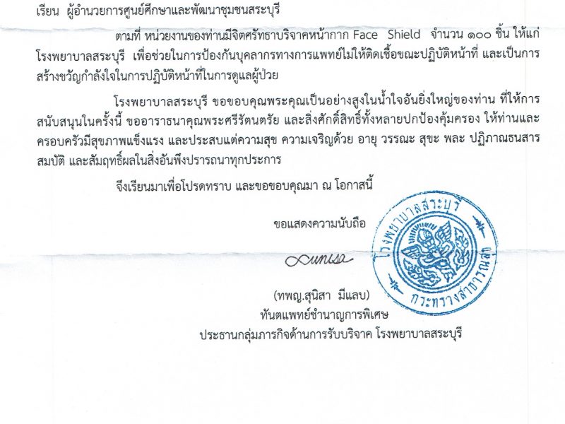 ชาว ศพช.สระบุรี ภูมิใจที่ได้เป็นส่วนหนึ่งในการช่วยเหลือสังคม COVID-19