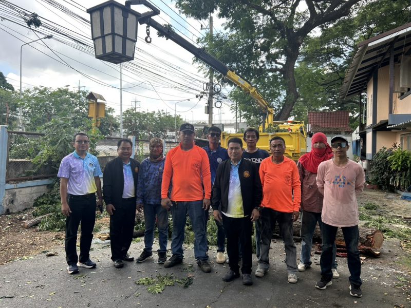 ศพช.สระบุรี ผนึกกำลังเทศบาลเมืองทับกวาง ตัดแต่งต้นไม้ใหญ่ เพื่อป้องกันภัยจากธรรมชาติ