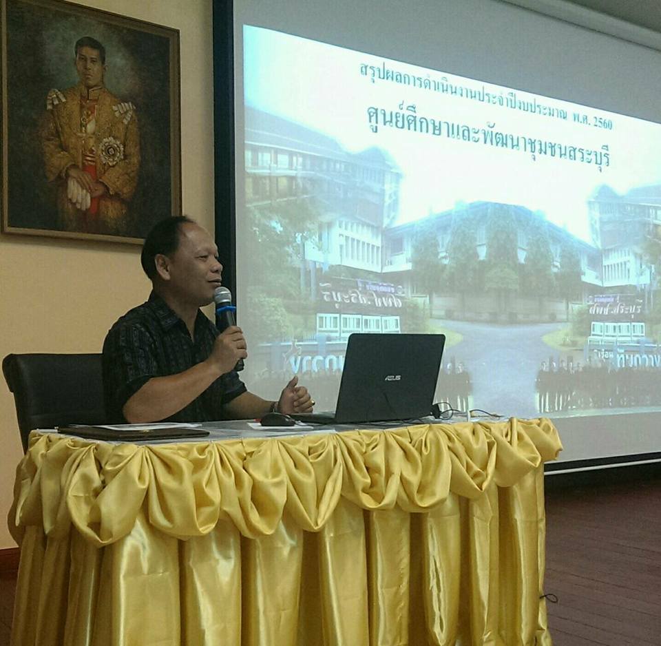 ศพช.สระบุรี : เมื่อวันที่ ๒๐ กันยายน ๒๕๖๐ นายสมาน พั่วโพธิ์ ผู้อำนวยการศูนย์ศึกษาและพัฒนาชุมชนสระบุรี