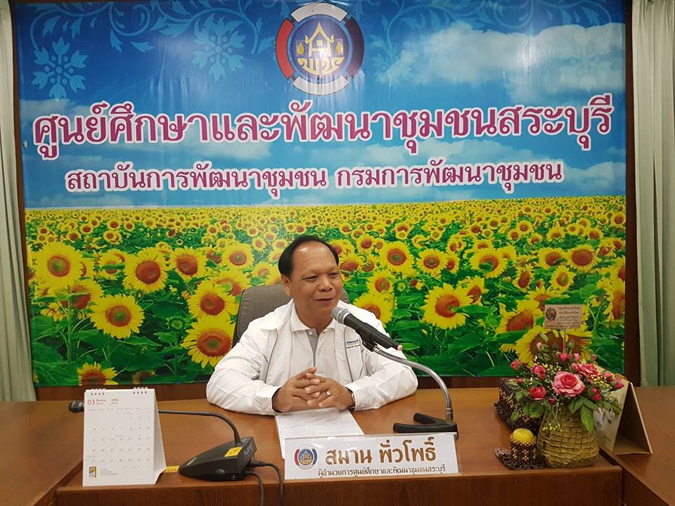 ศพช.สระบุรี : วันที่ 8 ก.พ.61 นายสมาน พั่วโพธิ์ ผู้อำนวยการศูนย์ศึกษาและพัฒนาชุมชนสระบุรี พบปะและกล่าวต้อนรับผู้เข้าประชุม พลังเครือข่ายสัมมาชีพเคลื่อนที่ : CDD Mobile ระหว่างวันที่ 8-9 กุมภาพันธ์ 2561 ณ ห้องประชุม 1 อาคารอำนวยการ ศพช.สระบุรี
