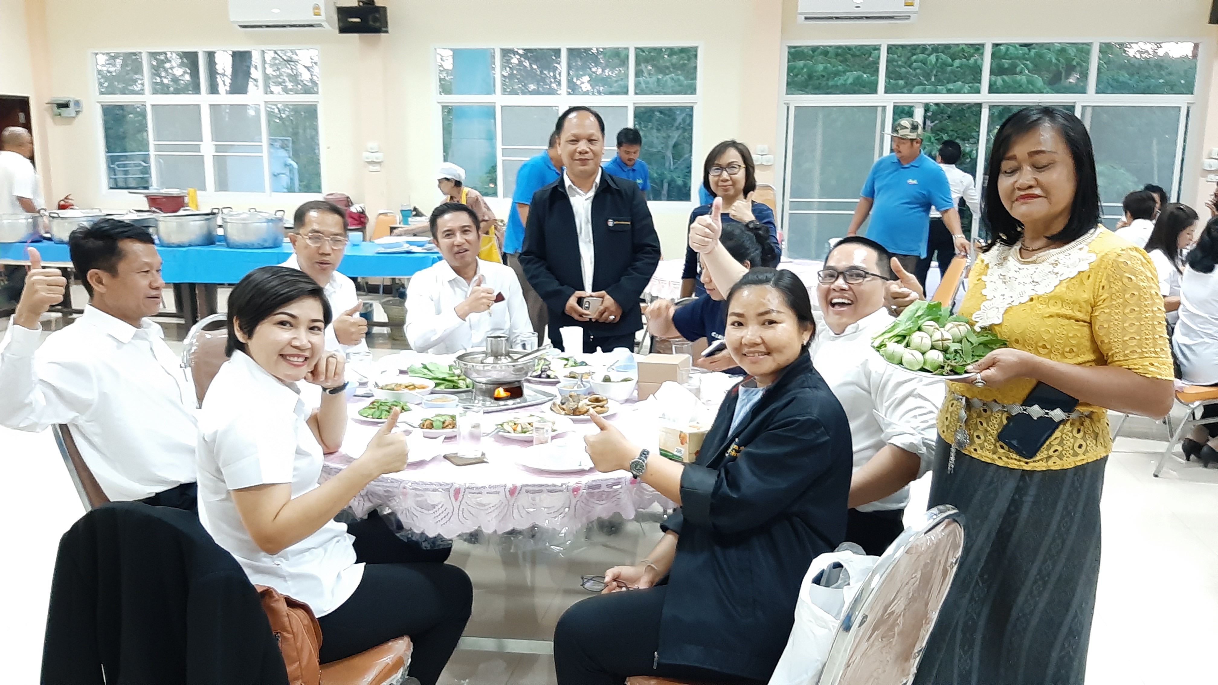 นายสมาน พั่วโพธิ์ ผอ.ศพช.สระบุรี และทีมงาน ให้การต้อนรับ ผู้เข้าร่วมโครงการฝึกอบรมหลักสูตรนักบริหารงานพัฒนาชุมชนระดับสูง (นพส.) รุ่นที่ 36 ในโอกาสแวะเยี่ยมชมสถานที่และรับประทานอาหารเย็น ก่อนเดินทางสู่วิทยาลัยการพัฒนาชุมชน ณ ห้องอาหารนนทรี ศูนย์ศึกษาและพัฒนาชุมชนสระบุรี