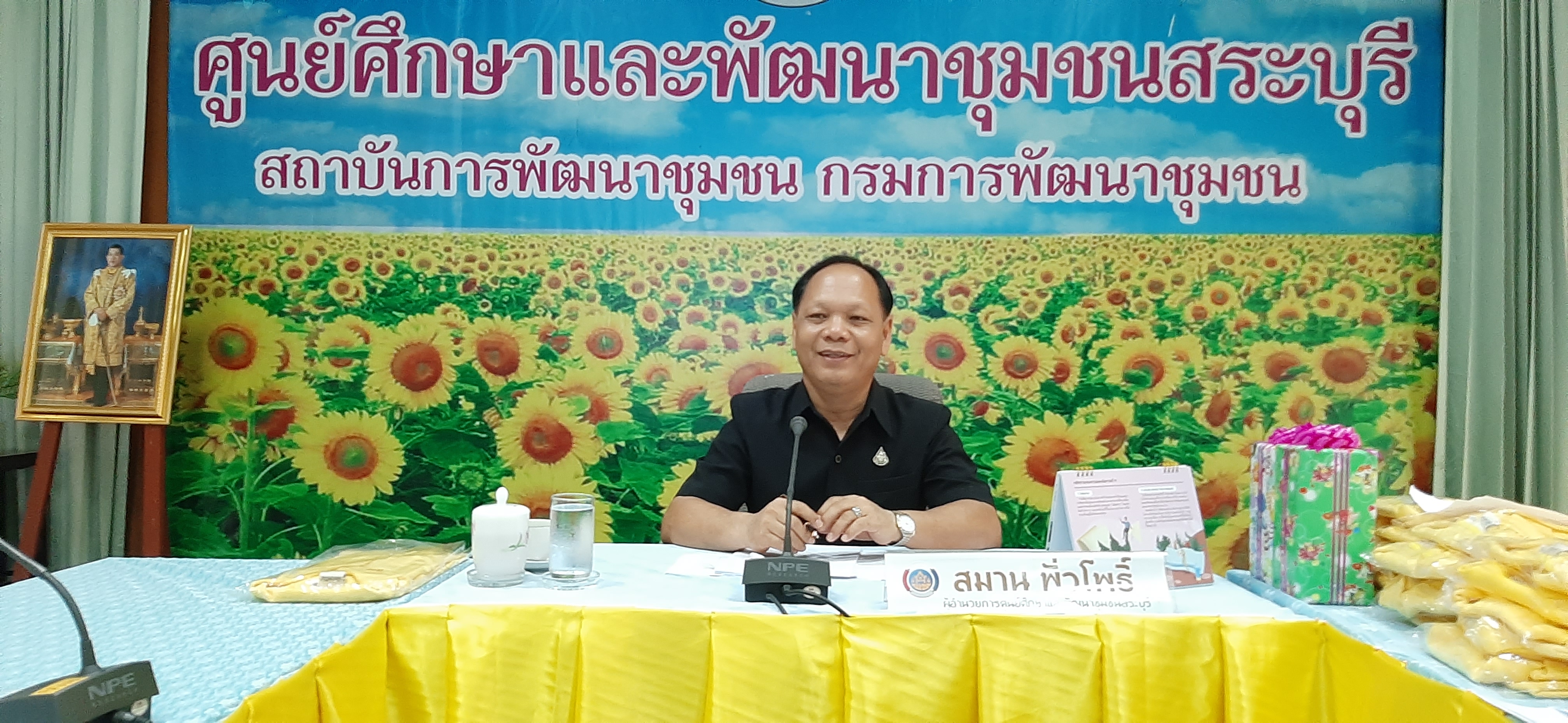 นายสมาน พั่วโพธิ์ ผู้อำนวยการศูนย์ศึกษาและพัฒนาชุมชนสระบุรี เป็นประธานในการประชุมข้าราชการและลูกจ้าง ศูนย์ศึกษาและพัฒนาชุมชนสระบุรี ครั้งที่ ๖/๒๕๖๒ ณ ห้องประชุม ๑ ศูนย์ศึกษาและพัฒนาชุมชนสระบุรี ในการนี้ ผอ.ศพช.สระบุรี ได้มอบเสื้อเฉลิมพระเกียรติฯ ให้กับข้าราชการ ลูกจ้าง และมอบของขวัญวันเกิดให้กับบุคลากรที่เกิดเดือนมิถุนายนด้วย