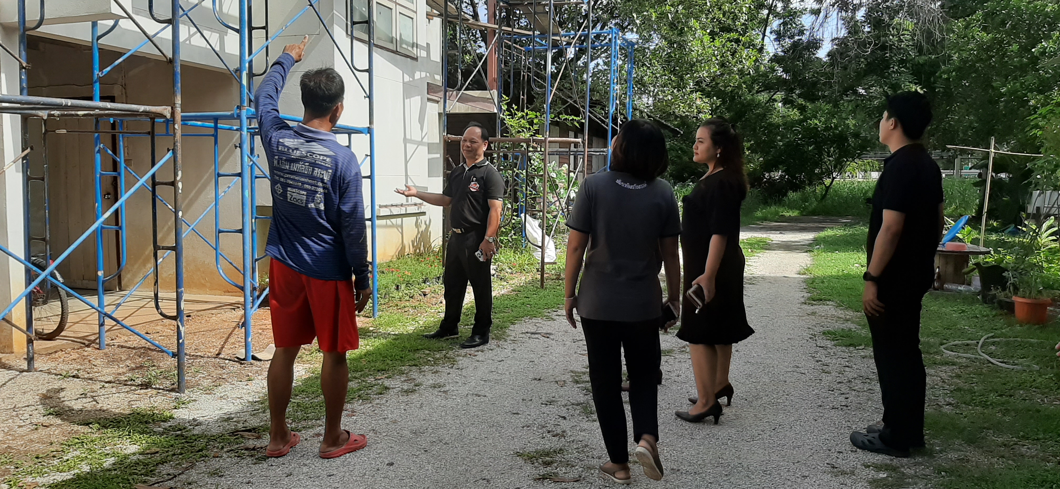 นายสมาน พั่วโพธิ์ ผู้อำนวยการศูนย์ศึกษาและพัฒนาชุมชนสระบุรี พร้อมด้วยกรรมการ ตรวจเยี่ยมโครงการปรับปรุงซ่อมแซมบ้านพักข้าราชการ ระดับ 1-2