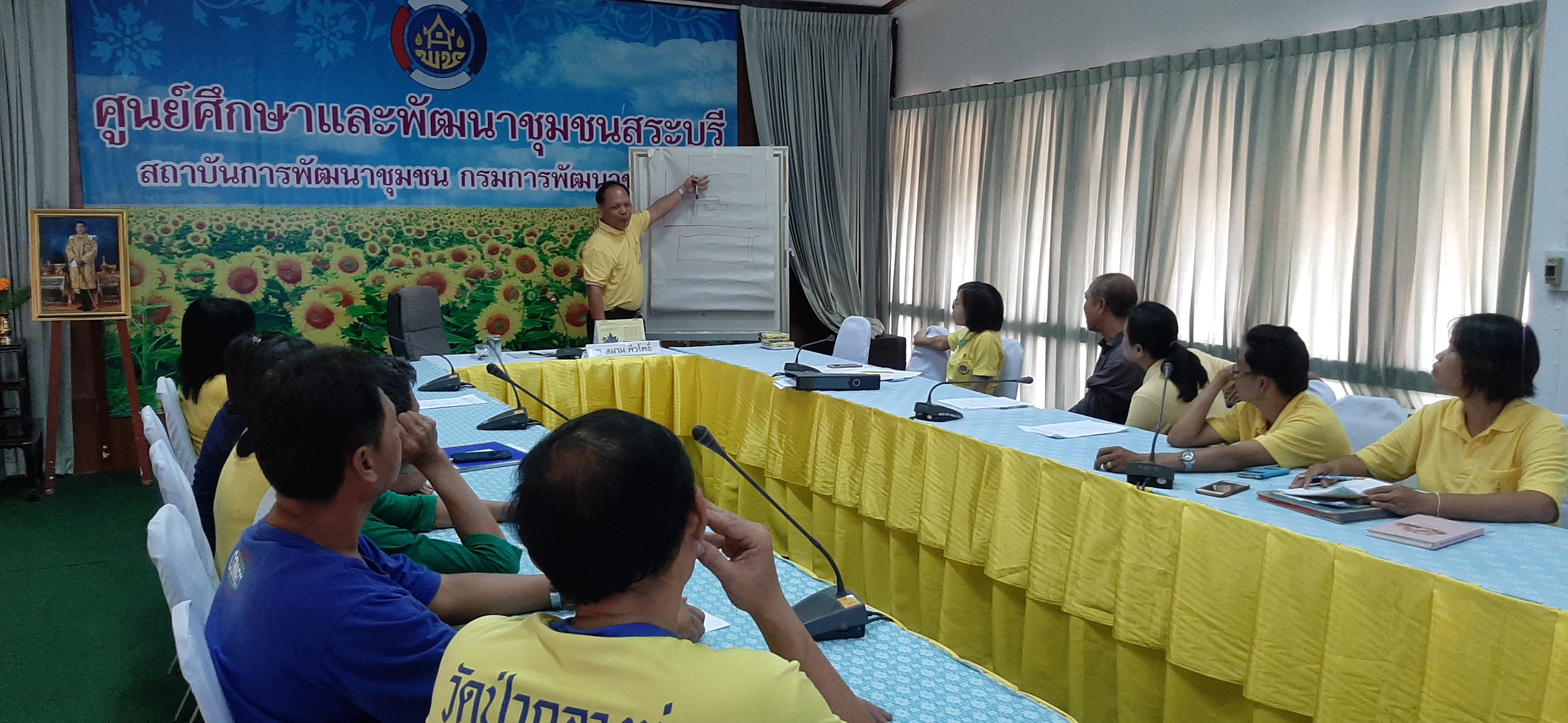 ? นายสมาน พั่วโพธิ์ ผู้อำนวยการศูนย์ศึกษาและพัฒนาชุมชนสระบุรี ประชุมงานอำนวยการ เพื่อเตรียมความพร้อม การจัดเตรียมสถานที่ ก่อนเข้ารับการประเมินตามมาตรฐานการให้บริการ Better Touch Point ณ ห้องประชุม๑ ศูนย์ศึกษาและพัฒนาชุมชนสระบุรี