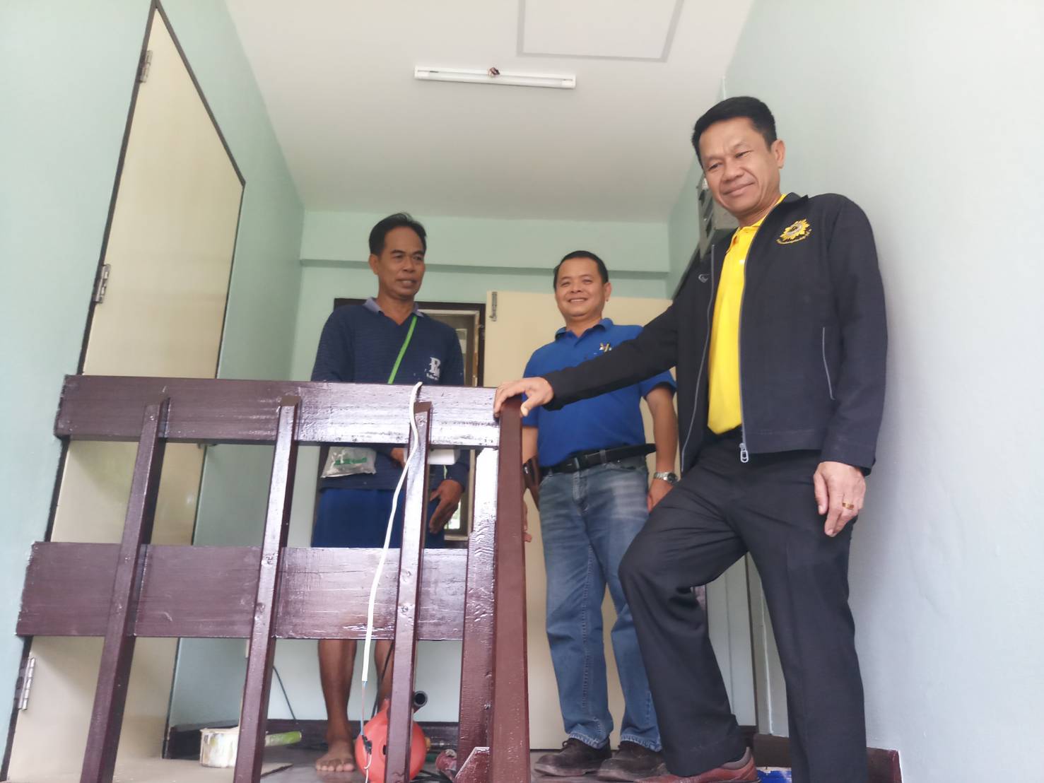 นายสุรพล ท้าวพรหม ผู้อำนวยการกลุ่มงานยุทธศาสตร์การพัฒนาทรัพยากรบุคคล สถาบันการพัฒนาชุมชน พร้อมด้วย นายเวนิช ทองดี นายช่างโยธาชำนาญงาน ติดตามควบคุมงานก่อสร้างโครงการปรับปรุงซ่อมแซมบ้านพักข้าราชการ ระดับ 1-2