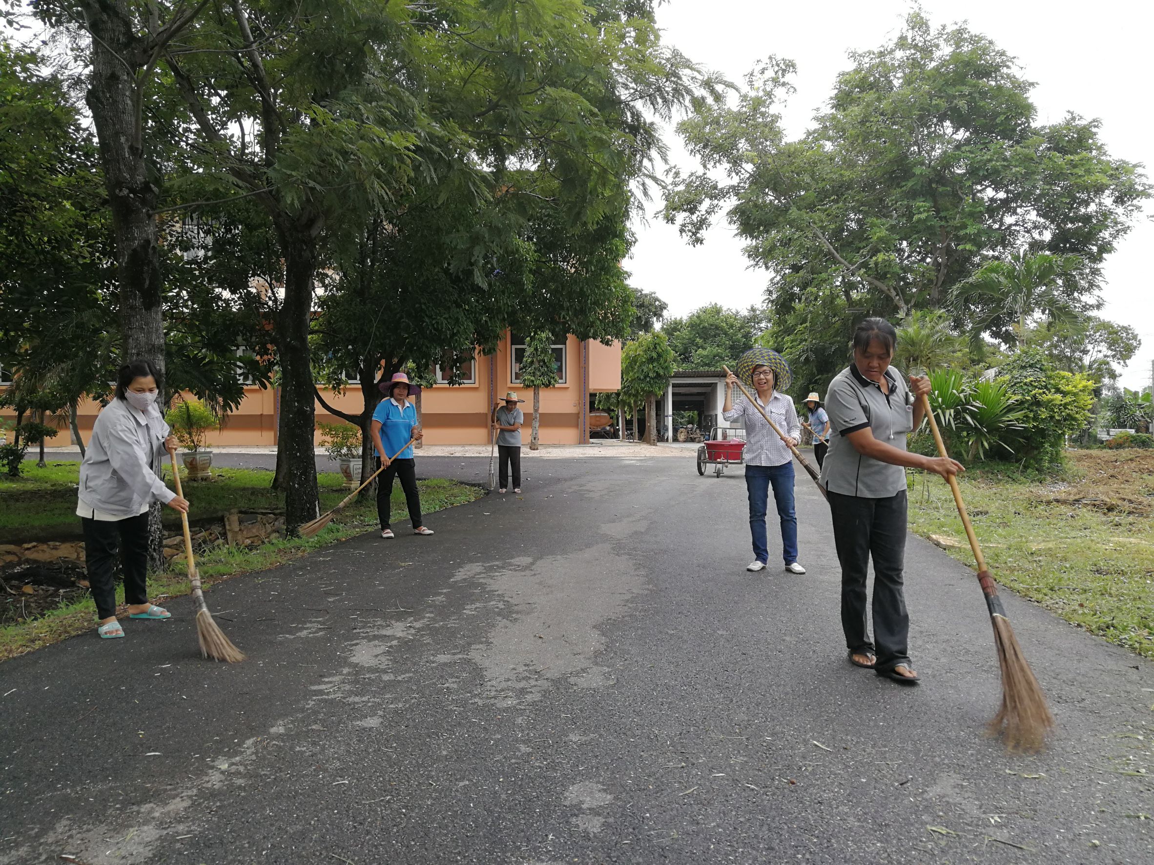 ?ภารกิจที่ ๑ ทำความสะอาดถนนรอบๆอาคาร และหน้สำนักงาน