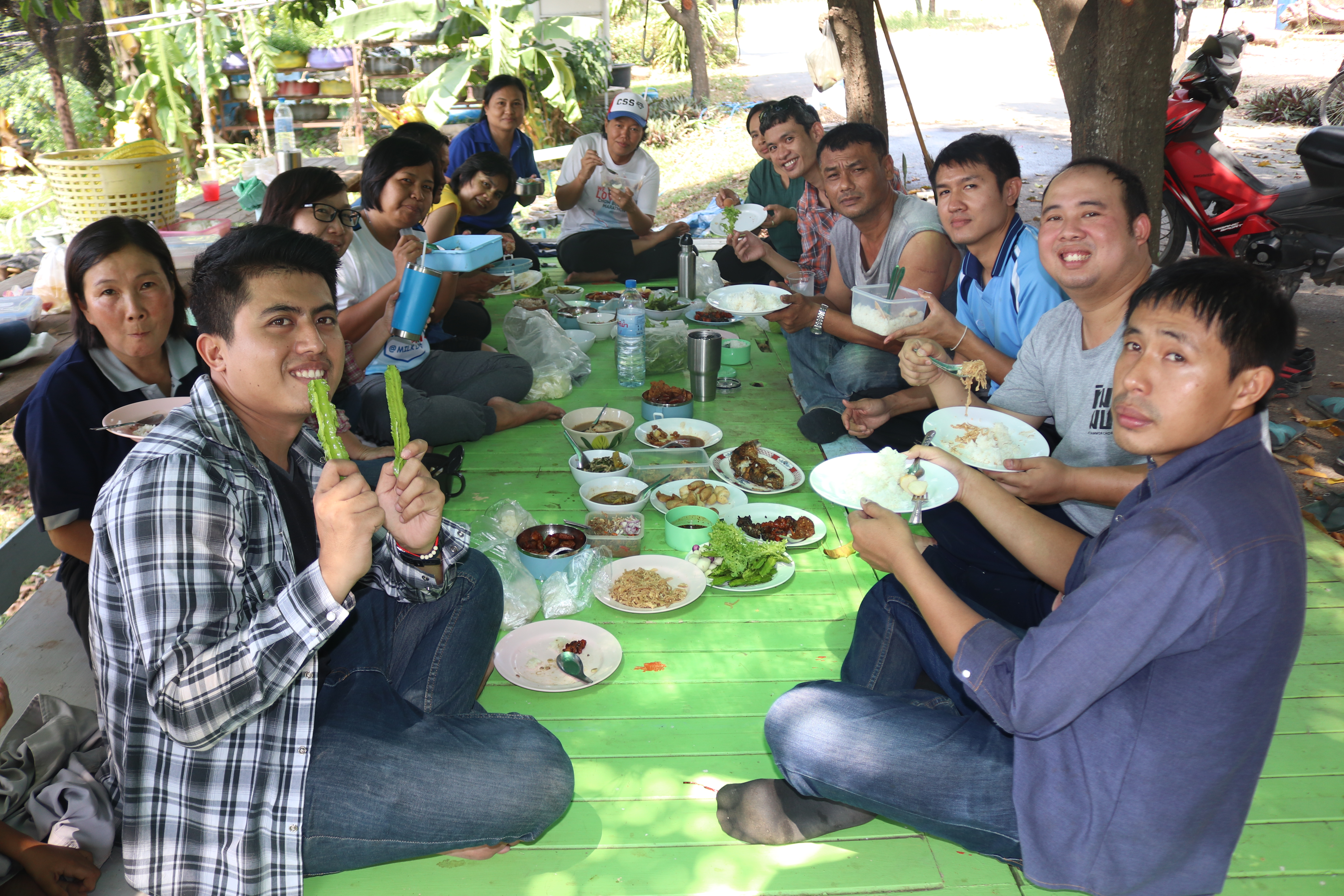 ☀️นายสุรพล ท้าวพรหม ผู้อำนวยการศูนย์ศึกษาและพัฒนาชุมชนสระบุรี พร้อมทีมงาน ร่วมกันปรับพื้นที่ จัดเตรียมดิน และวัสดุอุปกรณ์ต่างๆ เพื่อจัดทำ ?☀️ “โคก หนอง นา คาวบอย@ศพช.สระบุรี” ?พักเที่ยงกับ “ปิ่นโตสัมพันธ์” โดยเจ้าหน้าที่แต่ละคนหิ้วปิ่นโตพร้อมอาหารปรุงสุกมารับประทานร่วมกัน สร้างความสัมพันธ์น้องพี่ชาว ศพช.สระบุรี ?