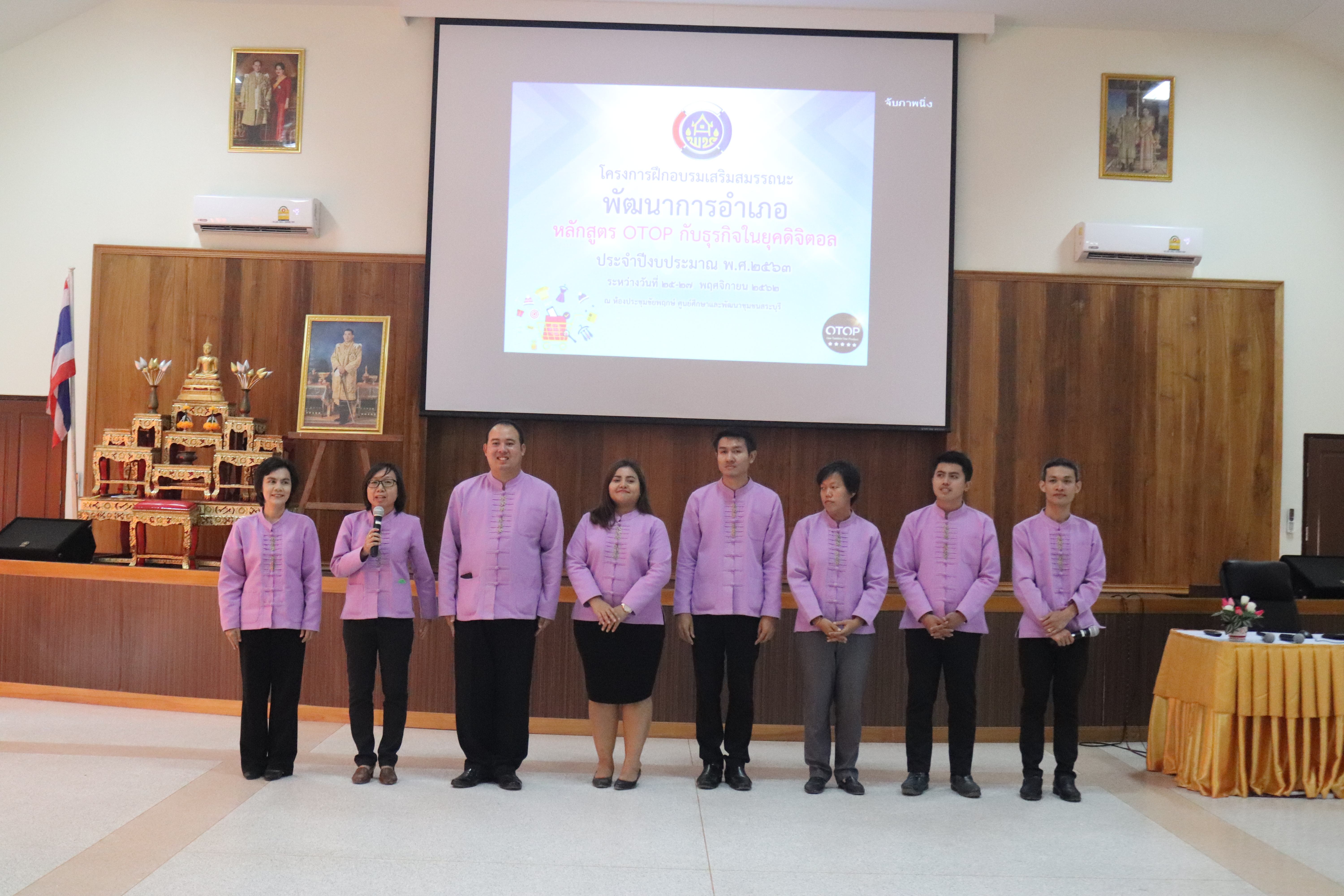 บรรยากาศการลงทะเบียน ปฐมนิเทศ และปรับฐาน โดยมีนายสุรพล ท้าวพรหม ผู้อำนวยการศูนย์ศึกษาและพัฒนาชุมชนสระบุรี พร้อมทีมงาน ศพช.สระบุรี กล่าวต้อนรับพัฒนาการอำเภอ 6 จังหวัดภาคกลางในเขตพื้นที่บริการ จังหวัดสระบุรี ลพบุรี สิงห์บุรี สุพรรณบุรี ชัยนาท และจังหวัดอ่างทอง จำนวน 55 คน ในโครงการเสริมสมรรถนะพัฒนาการอำเภอ ?หลักสูตร OTOP กับธุรกิจในยุคดิจิตอล ?และหลักสูตร การเงิน การคลัง ประจำปี พ.ศ.2563 ดำเนินการระหว่างวันที่ 25-29 พ.ย. 62 ณ ห้องประชุมชัยพฤกษ์ ศพช.สระบุรี
