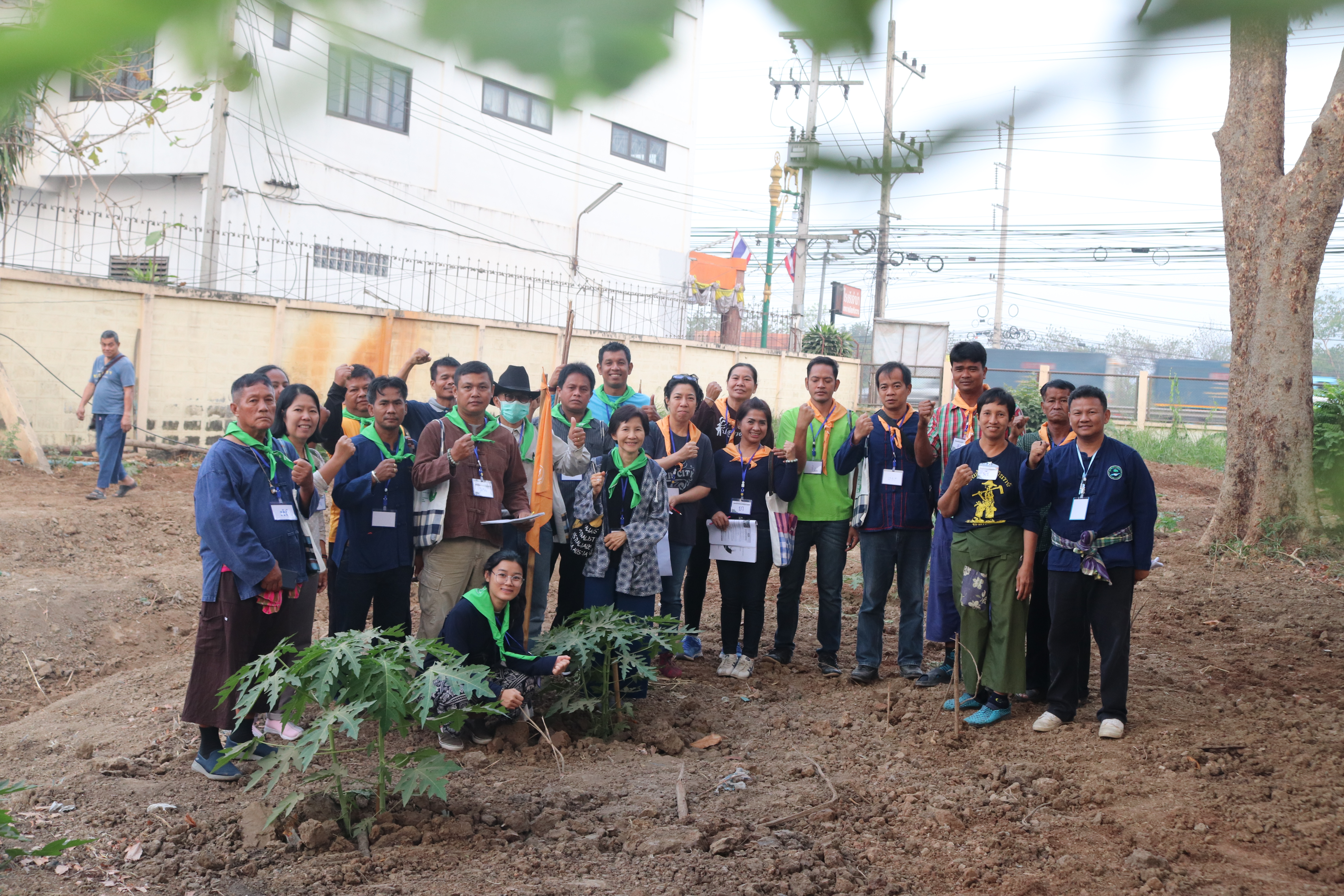?อรุณเบิกฟ้า 04.30น. ผู้เข้าอบรมร่วมกิจกรรมกายบริหาร พัฒนากาย พลังสมาธิ พลังปัญญา ก่อนรวมพล “เอามื้อ” ลงสำรวจพื้นที่ ออกแบบ นำเสนอ เตรียมลงแปลง “เอามื้อ” ของจริง หลังกิจกรรมเคารพธงชาติ … ชื่นมื่น! ผู้เข้าอบรมนำภาพการออกแบบมาต่อเป็นจิ๊กซอว์ให้เห็นภาพรวม และร่วมใจใส่รหัสพร้อมกันว่า “เสร็จแน่นอน” เป็นคำสัญญาที่ตั้งใจใส่รหัสเพื่อที่จะก้าวสู่จุดหมาย นำความรู้ที่ได้กลับไปพัฒนา สู่การพึ่งพาตนเอง
