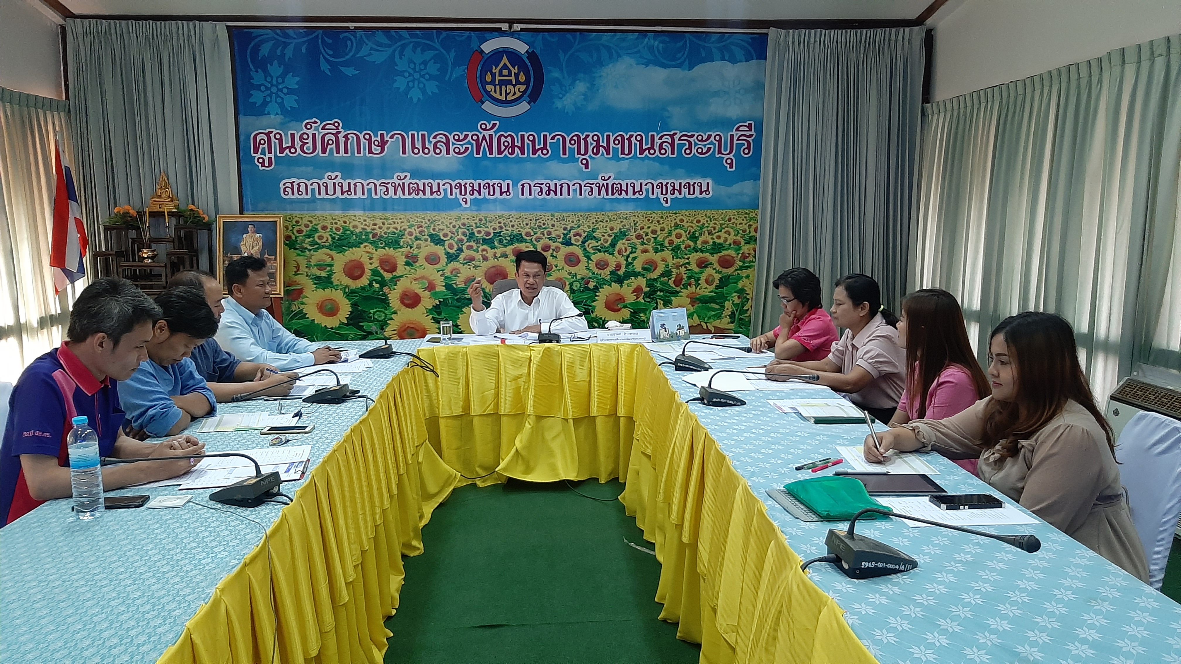 18 กุมภาพันธ์ 2563 เวลา 15.30น. นายสุรพล ท้าวพรหม ผู้อำนวยการศูนย์ศึกษาและพัฒนาชุมชนสระบุรี ประชุมทีมงาน ศพช.สระบุรี เพื่อเตรียมความพร้อม ?แผนปฏิบัติงานโครงการศึกษารูปแบบการทำงานของพัฒนากรที่ส่งผลให้ชุมชนเข้มแข็ง ประจำปีงบประมาณ พ.ศ.2563 และ ?การฝึกอบรมโครงการเพิ่มประสิทธิภาพศูนย์ฝึกอบรมประชาชน ดำเนินการไตรมาส 2-3 ? รวมพลคนสร้างโคกหนองนา 22-23 กพ.63 ?ศูนย์เรียนรู้ตามหลัก ศกพ. ณ ห้องประชุม 1 ศูนย์ศึกษาและพัฒนาชุมชนสระบุรี