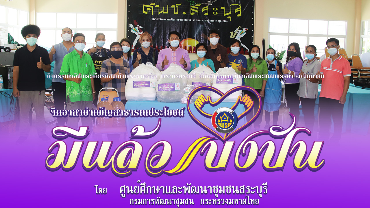 วันที่ 2 มิถุนายน 2564 นายสุรพล ท้าวพรหม ผู้อำนวยการศูนย์ศึกษาเเละพัฒนาชุมชนสระบุรี นำข้าราชการ เจ้าหน้าที่ จัดกิจกรรมเฉลิมพระเกียรติสมเด็จพระนางเจ้าฯ พระบรมราชินี เนื่องในโอกาสวันเฉลิมพระชนมพรรษา 3 มิถุนายน 2564 จิตอาสาบำเพ็ญสาธารณประโยชน์ “มีแล้วแบ่งปัน” โดยรวบรวมสิ่งของอุปโภคบริโภค พืชผักสมุนไพรปลอดสารพิษและเมล็ดพันธุ์พืช ผลผลิตที่ได้จากแปลงโคก หนอง นา ศพช.สระบุรี เช่น มะละกอ 10 ลูก ตะไคร้ 10 กิโลกรัม โหระพา 15 ถุง พริกขี้หนูสวน 9 ถุง มะเขือยาว 2 กิโลกรัม มะเขือเปราะ 4 กิโลกรัม พร้อมเมล็ดพันธุ์ผัก มาบรรจุถุงเพื่อแจกจ่าย ช่วยเหลือประชาชนที่ได้รับผลกระทบและความเดือดร้อนจากสถานการณ์การแพร่ระบาดของโรคติดเชื้อไวรัสโคโรน่า 2019 (COVID-19) และจัดทำข้าวกล่องพร้อมอาหารปรุงสำเร็จ ไข่ต้มพร้อมรับประทานจำนวน 100 กล่อง ร่วมกับเครือข่ายกสิกรรมธรรมชาติสวนล้อมศรีรินทร์ จำนวน 100 กล่อง รวมทั้งสิ้น 200 กล่อง ข้าวเหนียวมูลมะม่วงน้ำดอกไม้ จำนวน 50 กล่อง น้ำยาเอนกประสงค์ผลิตจากน้ำหมักรสเปรี้ยวจำนวน 20 ลิตร ส่งมอบให้กับบุคลากรทางการแพทย์โรงพยาบาลแก่งคอย จังหวัดสระบุรี เพื่อเป็นกำลังใจให้ปฏิบัติหน้าที่สู้กับโควิด-19 ในครั้งนี้