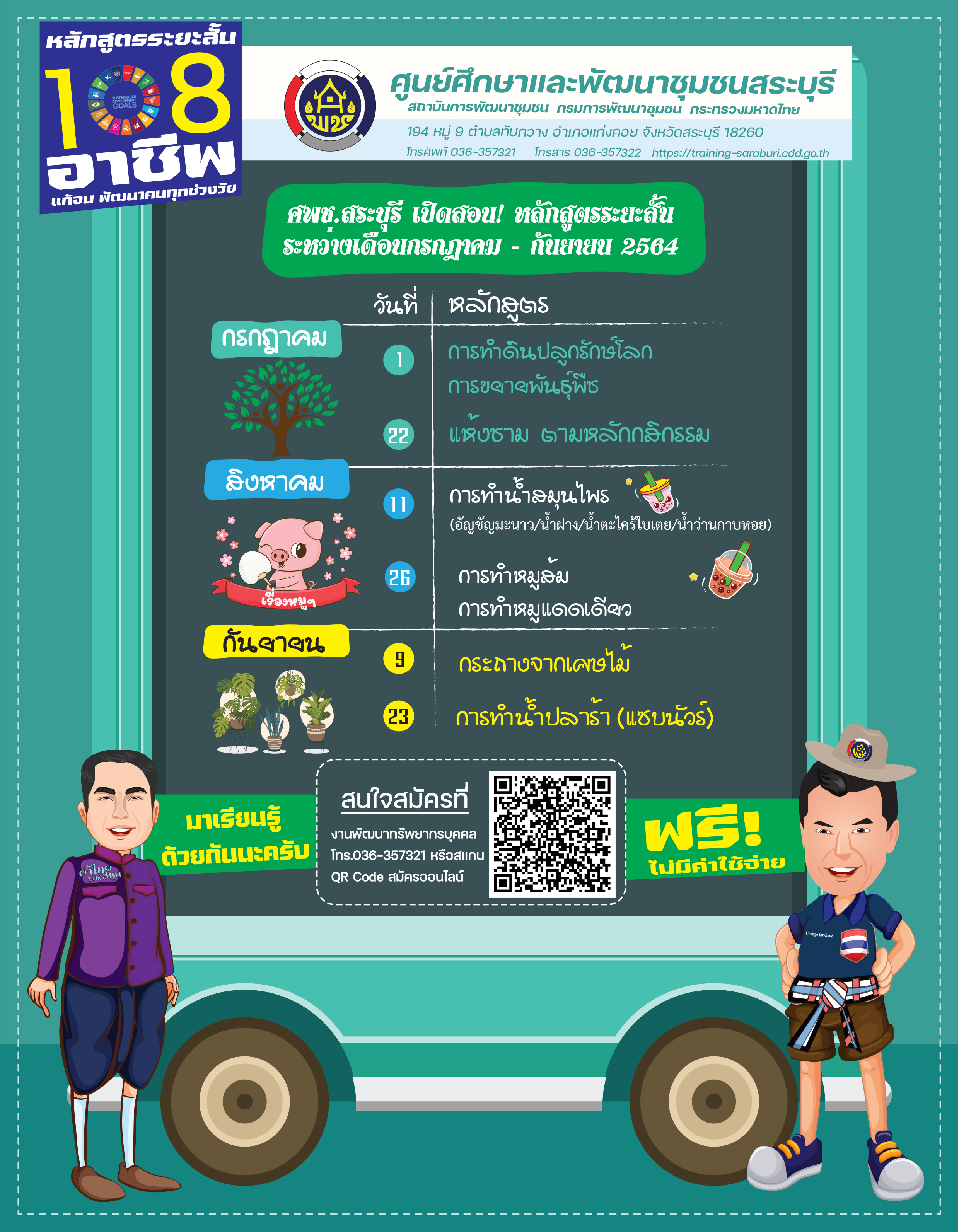 108 อาชีพ แก้จน พัฒนาคนทุกช่วงวัย 06 กรกฎาคม 64 / 14.24 น. / ผู้เข้าชม 0 ครั้ง สนใจฝึกอาชีพระยะสั้น Scan เลยจ้า (Visited 1 times, 1 visits today)Facebook iconFacebookTwitter iconTwitterLINE iconLine