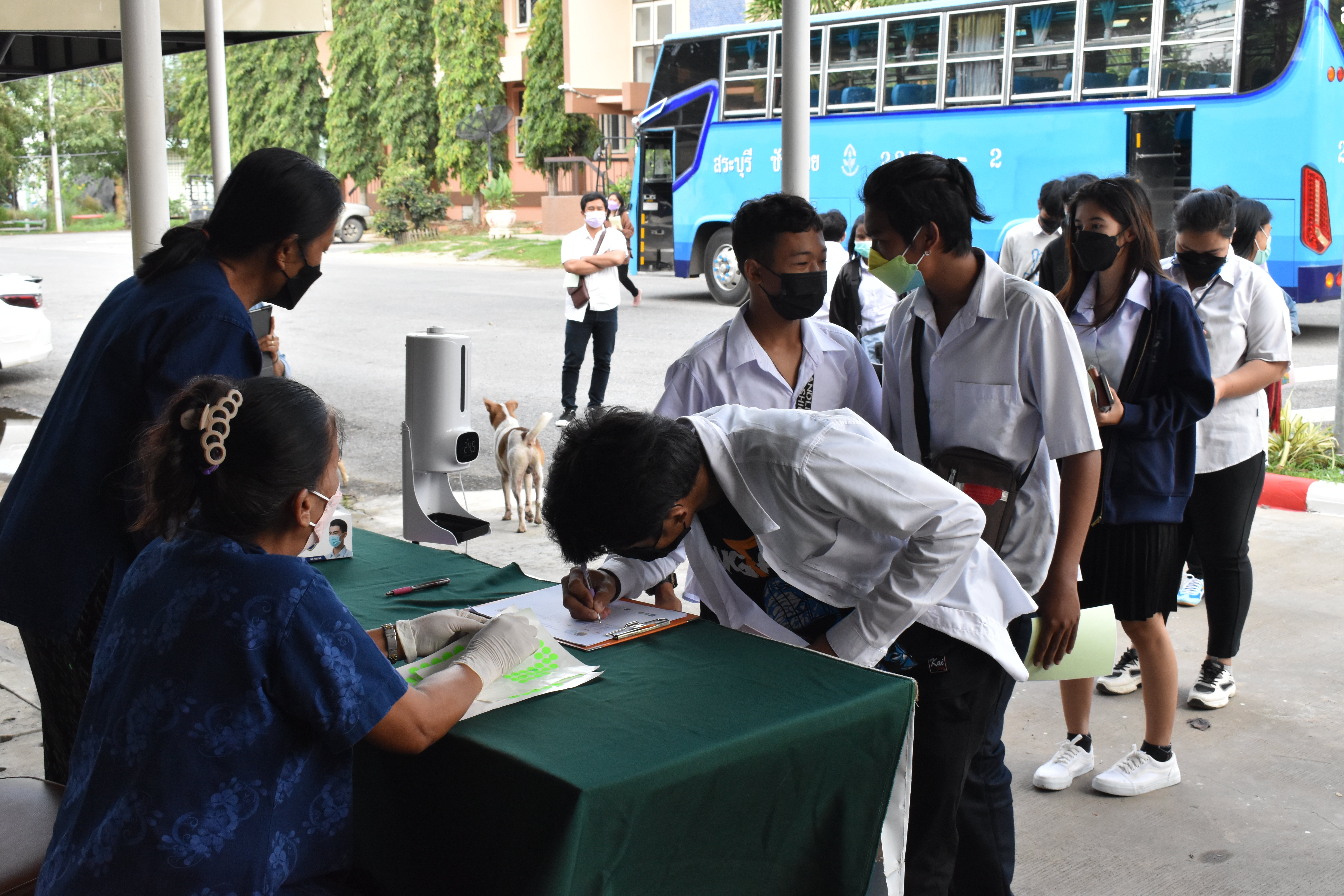 นางนิตยา เกษตร์ภิบาล หัวหน้างานพัฒนาทรัพยากรบุคคล นางสาวนิสากร ทุมทน หัวหน้างานวิชาการ ต้อนรับและสร้างกระบวนการเรียนรู้แก่คณะนักศึกษา กศน. จากอำเภอวังม่วง จังหวัดสระบุรี จำนวน 40 คน ตามโครงการเศรษฐกิจพอเพียงศาสตร์พระราชาสู่โคกหนองนาโมเดล โดยศูนย์การศึกษานอกระบบและการศึกษาตามอัธยาศัย(กศน.) อำเภอวังม่วง จังหวัดสระบุรี เพื่อให้นักศึกษามีความรู้ความเข้าใจหลักปรัชญาของเศรษฐกิจพอเพียง หลักทฤษฎีใหม่ และเพิ่มทักษะ ประสบการณ์ด้วยการสาธิต ฝึกปฏิบัติจริงในฐานเรียนรู้ 3 ฐาน ได้แก่ ฐานรักษ์แม่ธรณี ฐานคนรักษ์สุขภาพ ฐานอนุรักษ์พันธุกรรมพืช อีกทั้งเรียนรู้จัดการพื้นที่เพื่อบริหารจัดการน้ำในรูปแบบ “โคก หนอง นา โมเดล” ให้สามารถนำความรู้ ทักษะและประสบการณ์ไปปรับประยุกต์ใช้ตามภูมิสังคมในการประกอบอาชีพ สู่การพึ่งตนเองอย่างยั่งยืนต่อไป ภายใต้มาตรการการคัดกรองอย่างเข้มงวด