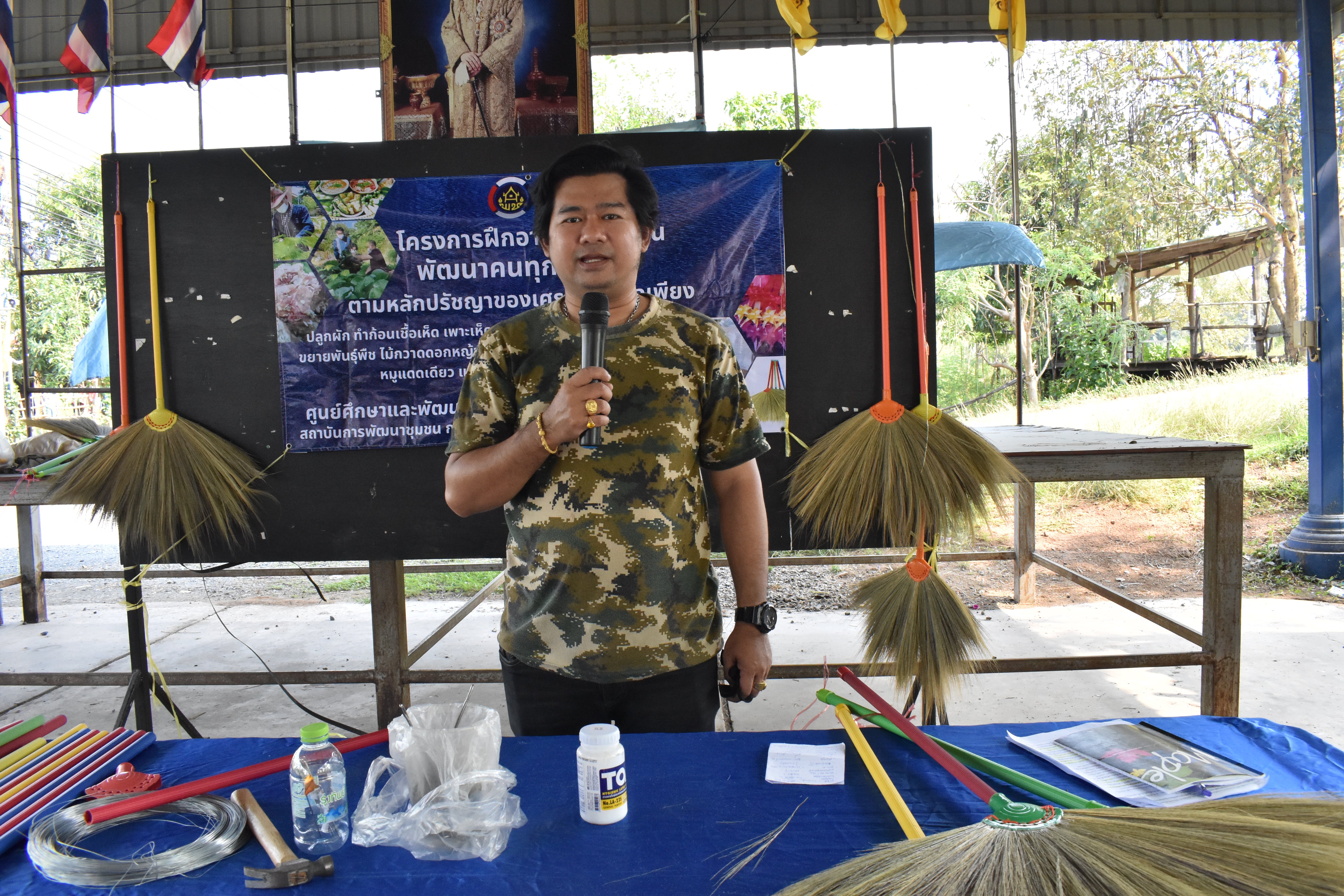ผู้อำนวยการศูนย์ศึกษาเเละพัฒนาชุมชนสระบุรี มอบหมายให้ทีมงานศูนย์ศึกษาและพัฒนาชุมชนสระบุรีดำเนินการโครงการฝึกอาชีพประชาชนพัฒนาคนทุกช่วงวัย ตามหลักปรัชญาเศรษฐกิจพอเพียง ถ่ายทอดองค์ความรู้การทำไม้กวาดดอกหญ้า