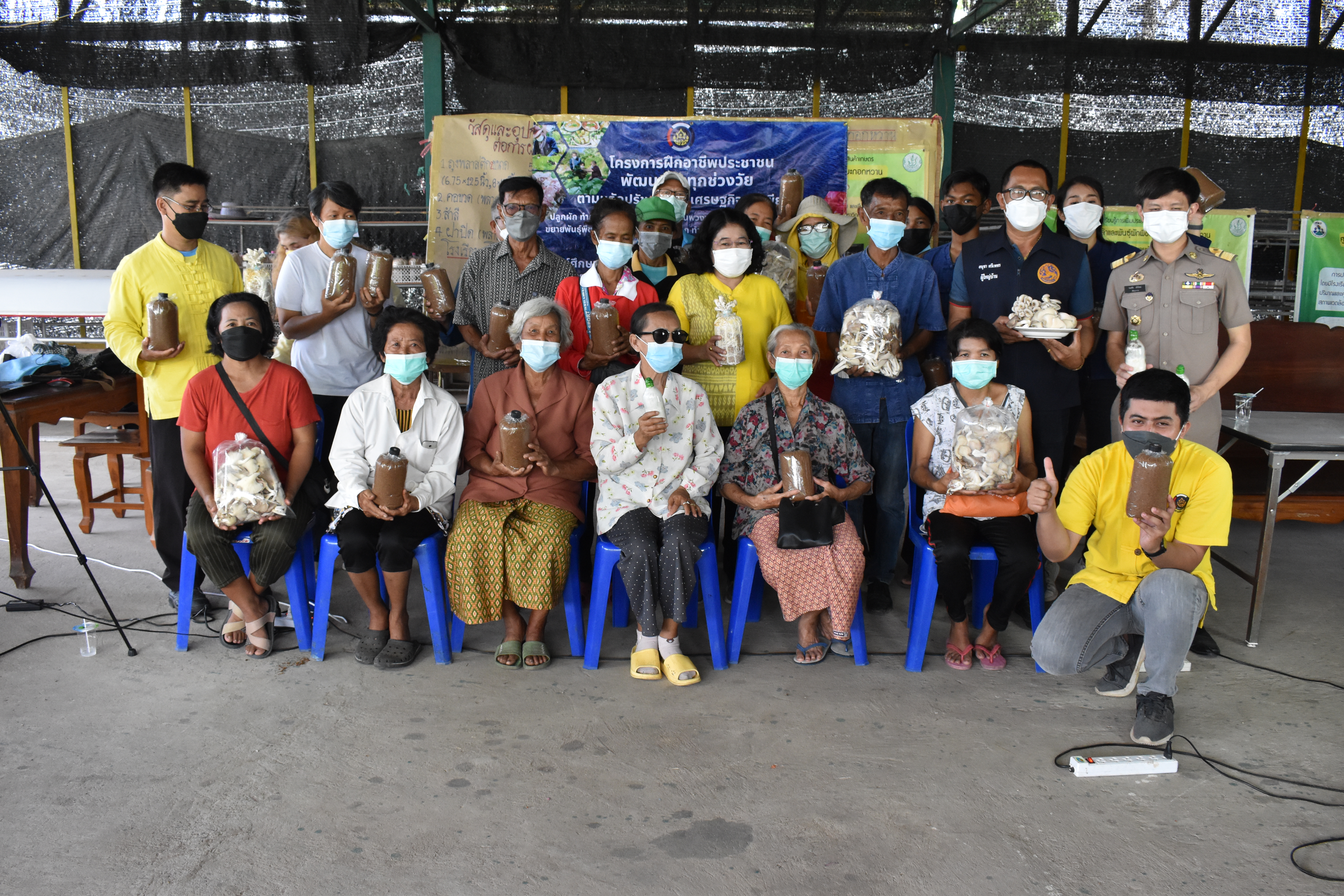 นักวิชาการพัฒนาชุมชนชำนาญการ (หัวหน้างานวิชาการ) พร้อมทีมงานดำเนินการโครงการฝึกอาชีพประชาชนพัฒนาคนทุกช่วงวัย ตามหลักปรัชญาเศรษฐกิจพอเพียง ถ่ายทอดองค์ความรู้การเพาะเห็ดนางฟ้าภูฐาน ปราชญ์ผู้ฝึกอาชีพ :นายชานนท์ เกตุแก้วดำเนินการ ณ ศูนย์เครือข่ายศูนย์เรียนรู้การเพิ่มประสิทธิภาพการผลิตสินค้าการเกษตร ตำบลมะกอกหวาน อำเภอชัยบาดาล จังหวัดลพบุรี และผ่านระบบออนไลน์ True Vroom และรับชมการถ่ายทอดสดการฝึกอาชีพผ่านช่องทาง YouTube Streaming โดยมีกลุ่มเป้าหมายเข้าร่วมโครงการ รุ่นที่ 3 จำนวน 22 คน