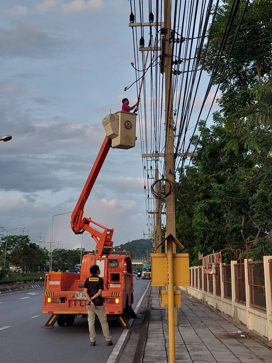 นายสุรพล ท้าวพรหม ผู้อำนวยการศูนย์ศึกษาและพัฒนาชุมชน ได้ขอรับการสนับสนุนรถกระเช้าจากเทศบาลเมืองทับกวาง เพื่อสนับสนุนทีมงานศพช.สระบุรี ตัดต้นไม้สูงตามแนวเดินสายไฟฟ้าแรงสูงภายในบริเวณศูนย์ศึกษาและพัฒนาชุมชนสระบุรี และอำนวยความสะดวกให้แก่พนักงานช่างไฟฟ้าเพื่อมาตัดไฟฟ้าแรงสูงเป็นการชั่วคราวเพื่อให้สามารถดำเนินการตัดต้นไม้ใหญ่ได้อย่างปลอดภัย พร้อมรับคำแนะนำและข้อปฏิบัติในการทำงานบริเวณรอบๆ เสาส่งไฟฟ้าแรงสูงตามหลักการ “ปลอดภัยไว้ก่อน( Safty first) ” อย่างเคร่งครัดเพื่อให้การปฏิบัติงานของบุคลากรมีความปลอดภัยในระดับสูงสุดในการปฏิบัติงานและไม่ทำผิดข้อกำหนดกฎหมายของการไฟฟ้าฝ่ายผลิตแห่งประเทศไทย เพื่อให้มีความพร้อมในทุกมิติ ตามภารกิจการฝึกอบรมของศูนย์ศึกษาและพัฒนาชุมชนสระบุรี ให้มีการยกระดับคุณภาพและมาตรฐานที่สูงขึ้น ต่อไป