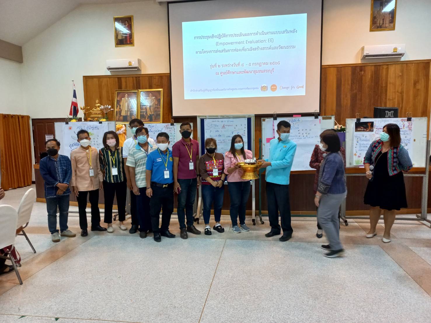 วันที่ 5 กรกฎาคม 2565 สำนักส่งเสริมภูมิปัญญาท้องถิ่นและวิสาหกิจชุมชน ดำเนินการประชุมเชิงปฏิบัติการประเมินผลการดำเนินงานแบบเสริมพลัง( Empowerment Evaluation: EE) ตามโครงการส่งเสริมการท่องเที่ยวเชิงสร้างสรรค์และวัฒนธรรม รุ่นที่ 2 ระหว่างวันที่ 4-5 กรกฎาคม 2565 ณ ศูนย์ศึกษาและพัฒนาชุมชนสระบุรี
