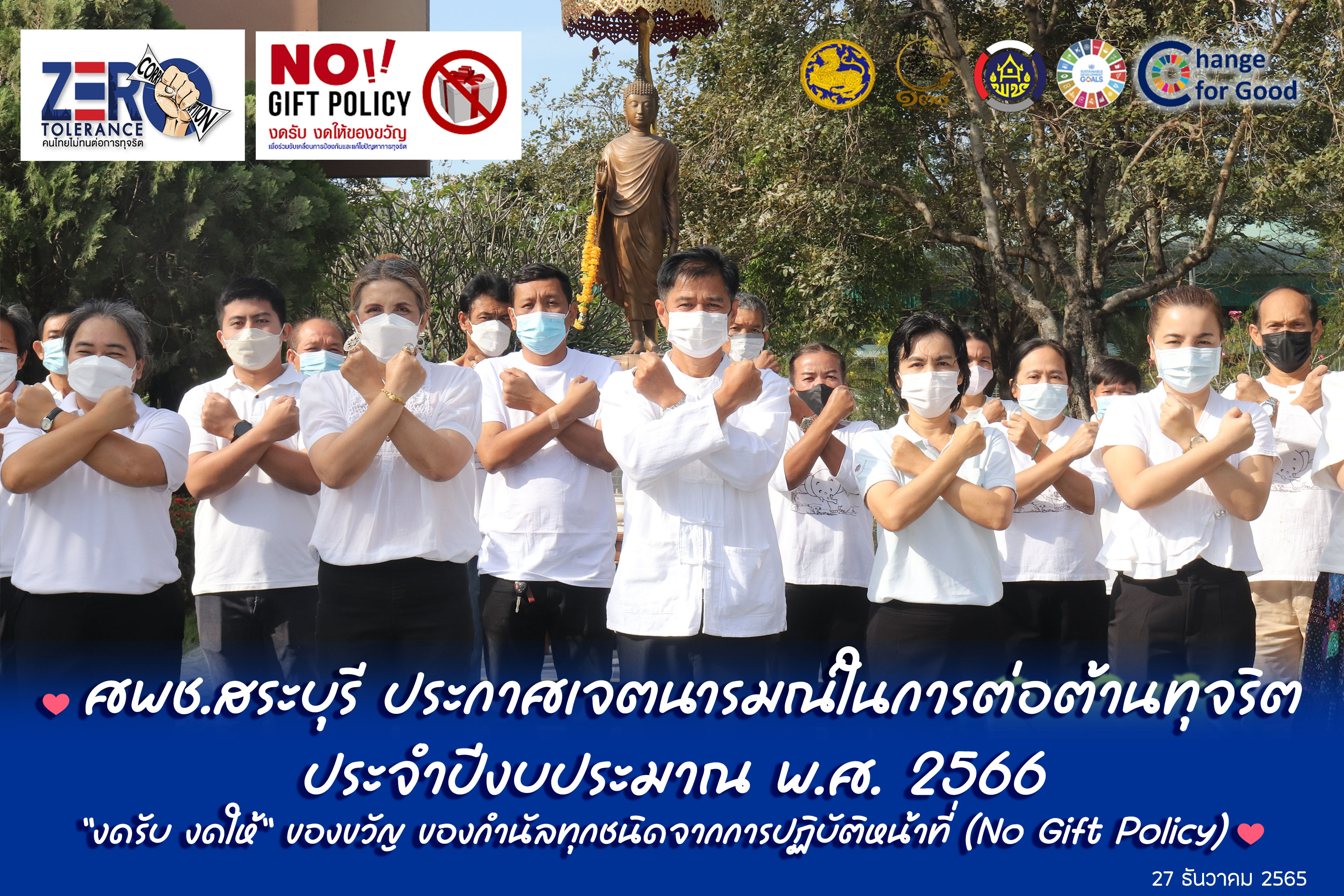 ศพช.สระบุรี ประกาศเจตนารมณ์ในการต่อต้านทุจริต ประจำปีงบประมาณ พ.ศ. 2566 “งดรับ งดให้” ของขวัญ ของกำนัลทุกชนิดจากการปฏิบัติหน้าที่ (No Gift Policy)