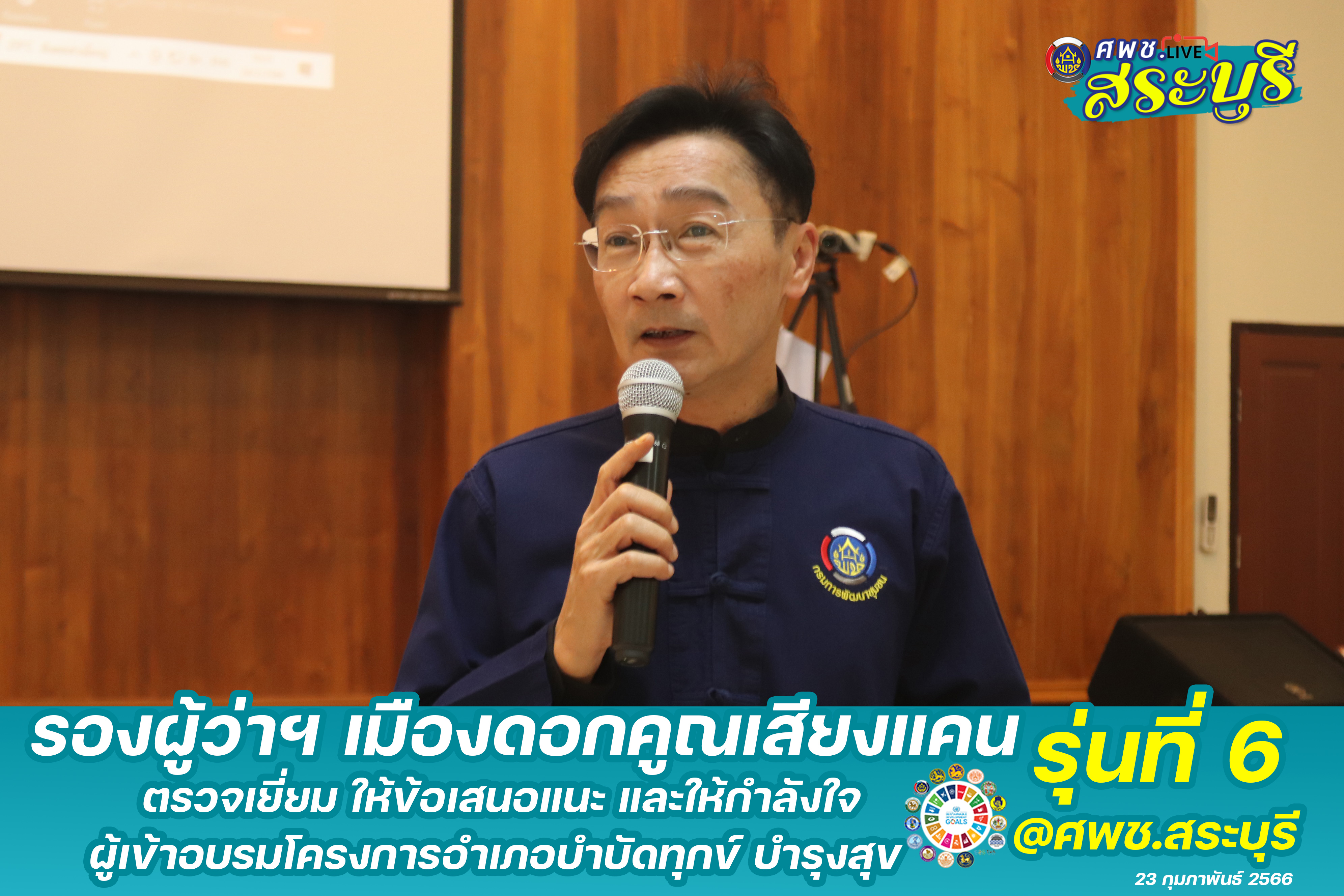 ?รองผู้ว่าฯ เมืองดอกคูณเสียงแคน ตรวจเยี่ยม ให้ข้อเสนอแนะ และให้กำลังใจผู้เข้าอบรมโครงการอำเภอบำบัดทุกข์ บำรุงสุข แบบบูรณาการอย่างยั่งยืน รุ่นที่ 6 @ศพช.สระบุรี ?