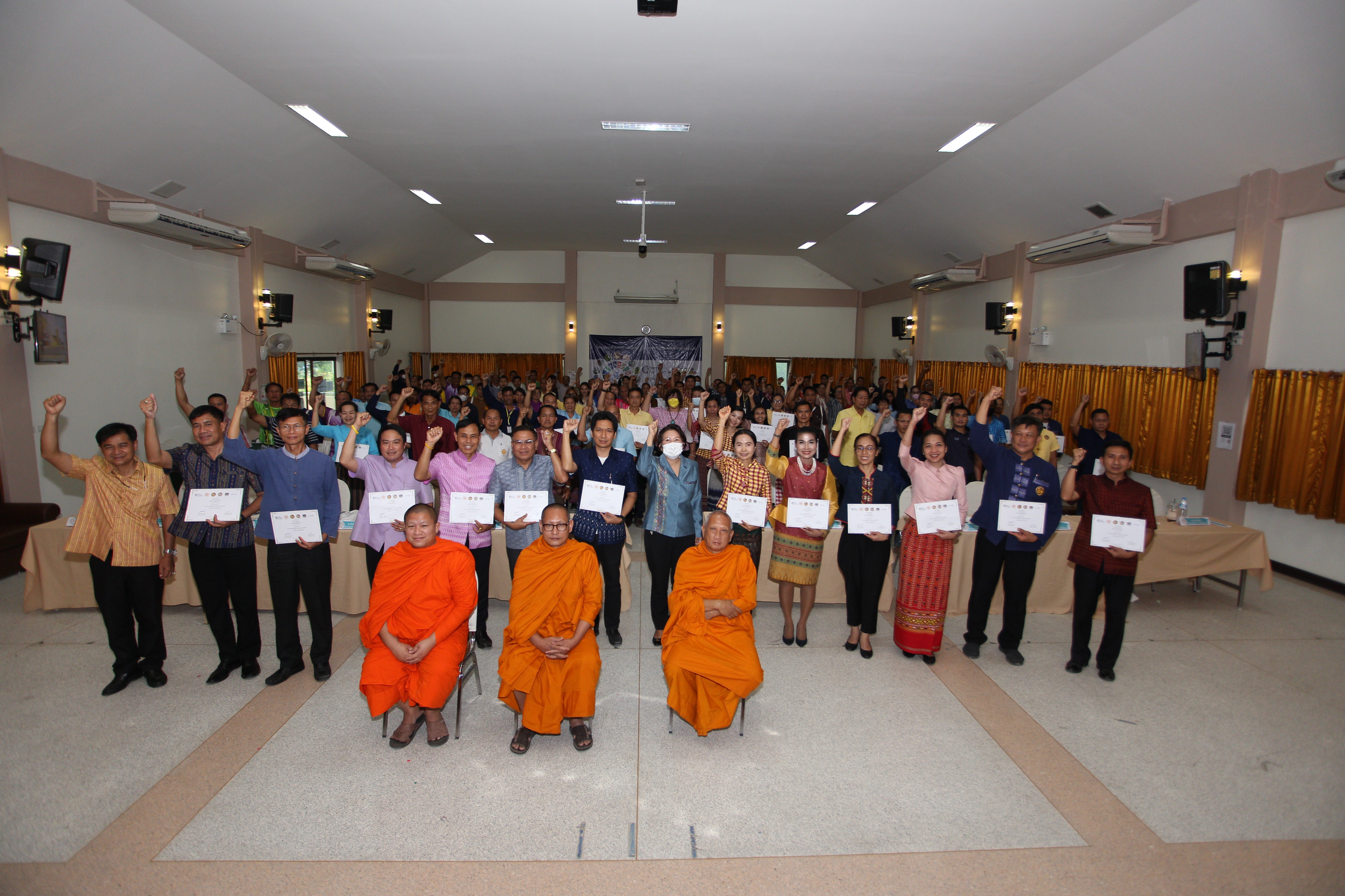?เวลา 16.00 น. นางอังคณา ชิตะติตติ รองผู้ว่าราชการจังหวัดสระบุรี เป็นประธานในพิธีปิดการฝึกอบรม โดยถวายเกียรติบัตรให้พระภิกษุสงฆ์ และมอบเกียรติบัตรให้กับผู้ที่จบหลักสูตร จากนั้นกล่าวให้กำลังใจกับผู้เข้าอบรม โดยรอง ผวจ.สระบุรี เน้นย้ำให้นำแผนงาน/โครงการ ที่ได้ร่วมกันจัดทำ กลับไป “บำบัดทุกข์ บำรุงสุข” ให้กับพี่น้องประชาชนในพื้นที่ได้อย่างเกิดประโยชน์สูงสุด