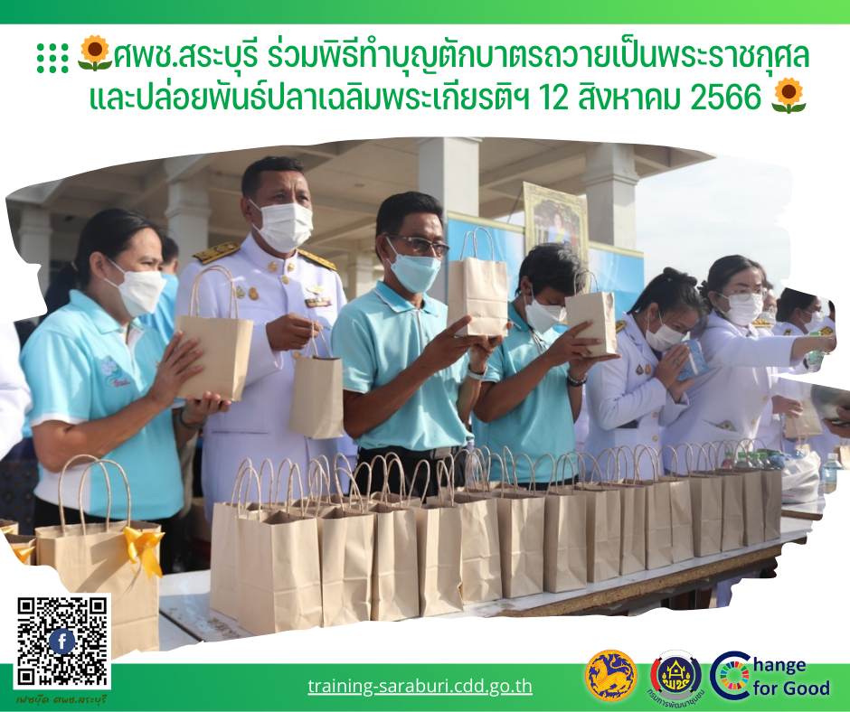 ?ศพช.สระบุรี ร่วมพิธีทำบุญตักบาตรถวายเป็นพระราชกุศล และปล่อยพันธ์ปลาเฉลิมพระเกียรติสมเด็จพระนางเจ้าสิริกิติ์ พระบรมราชินีนาถ พระบรมราชชนนีพันปีหลวง เนื่องในโอกาสมหามงคลเฉลิมพระชนมพรรษา?
