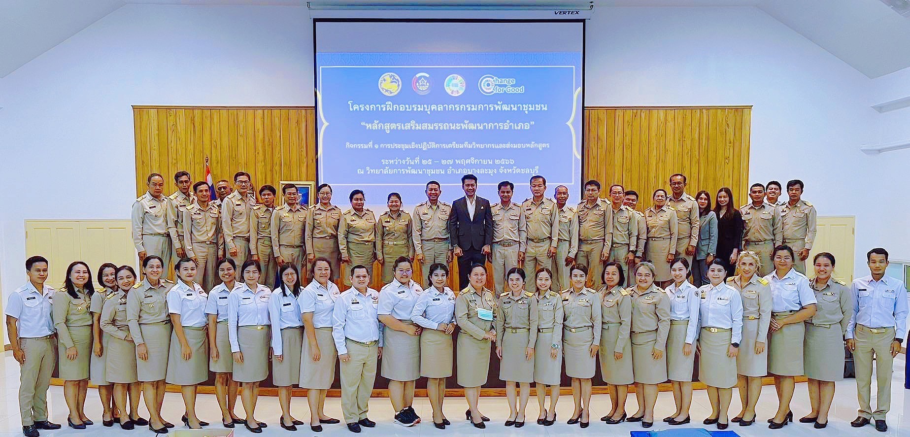 นายชัยวัฒน์ ชื่นโกสุม อธิบดีกรมการพัฒนาชุมชน มอบหมายนายวิฑูรย์ นวลนุกูล รองอธิบดีกรมการพัฒนาชุมชน กำกับติดตามการดำเนินงานของสถาบันการพัฒนาชุมชน โดยนายสมาน พั่วโพธิ์ ผู้อำนวยการสถาบันการพัฒนาชุมชน นำทีมเจ้าหน้าที่สถาบันการพัฒนาชุมชน ขับเคลื่อนการดำเนินกิจกรรมตามโครงการฝึกอบรมบุคลากรกรมการพัฒนาชุมชน หลักสูตรเสริมสมรรถนะพัฒนาการอำเภอ กิจกรรมที่ 1 การประชุมเชิงปฏิบัติการเตรียมทีมวิทยากรและส่งมอบหลักสูตร ระหว่างวันที่ 25-27 พฤศจิกายน 2566 กลุ่มเป้าหมายประกอบด้วย ผู้อำนวยการศูนย์ศึกษาและพัฒนาชุมชน 11 แห่ง นักวิชาพัฒนาชุมชนชำนาญการพิเศษ และเจ้าหน้าที่ศูนย์ศึกษาและพัฒนาชุมชน รวมกลุ่มเป้าหมายทั้งสิ้น 44 คน มีวัตถุประสงค์เพื่อถ่ายทอด วิพากษ์ และปรับกระบวนการของหลักสูตรให้มีความสมบูรณ์
