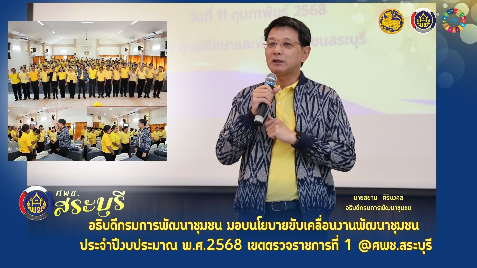 อธิบดีกรมการพัฒนาชุมชน มอบนโยบายขับเคลื่อนงานพัฒนาชุมชน ประจำปีงบประมาณ พ.ศ.2568 เขตตรวจราชการที่ 1 ณ ศูนย์ศึกษาและพัฒนาชุมชนสระบุรี