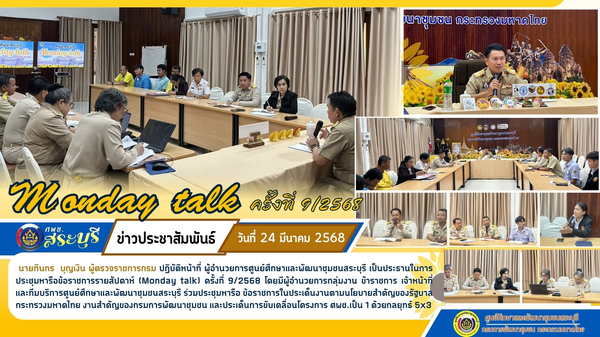 ศพช.สระบุรี ดำเนินการประชุมหารือข้อราชการรายสัปดาห์ (Monday talk) ครั้งที่ 9/2568