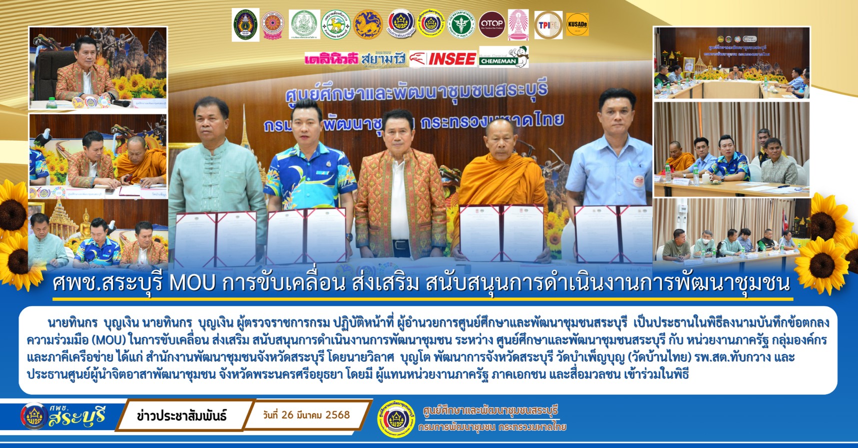 🌻✨ศพช. สระบุรี จัดพิธีลงนามบันทึกข้อตกลงความร่วมมือ (MOU)