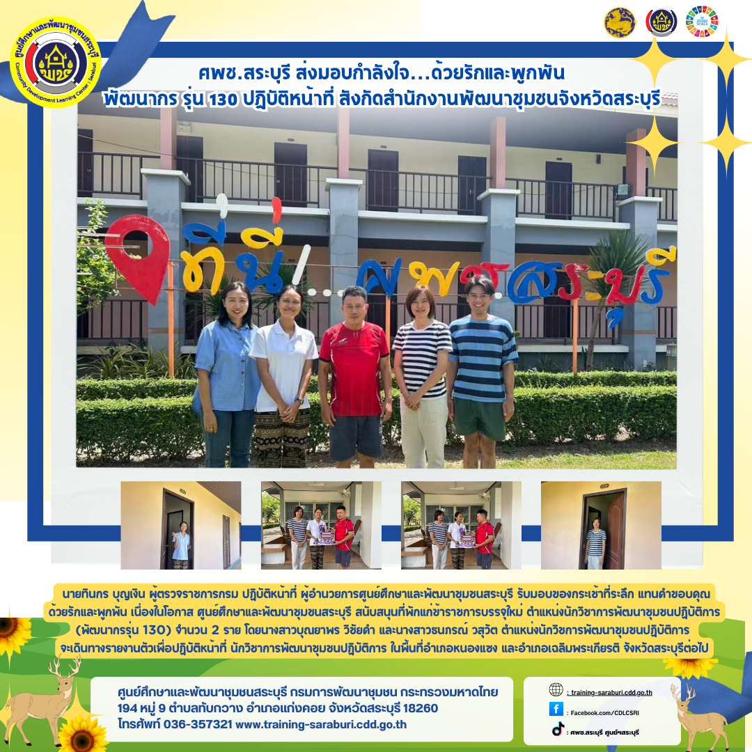ศพช.สระบุรี ส่งมอบกำลังใจ…ด้วยรักและพูกพัน พัฒนากร รุ่น 130 ปฏิบัติหน้าที่ สังกัดสำนักงานพัฒนาชุมชนจังหวัดสระบุรี