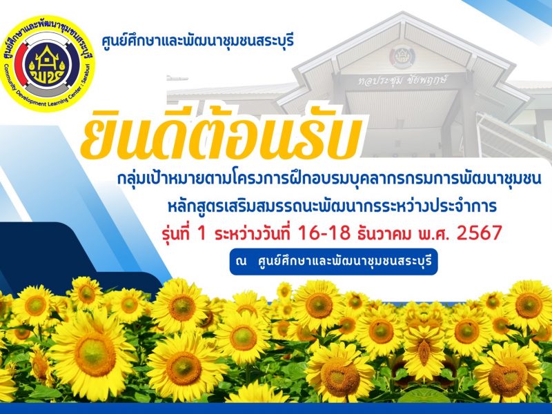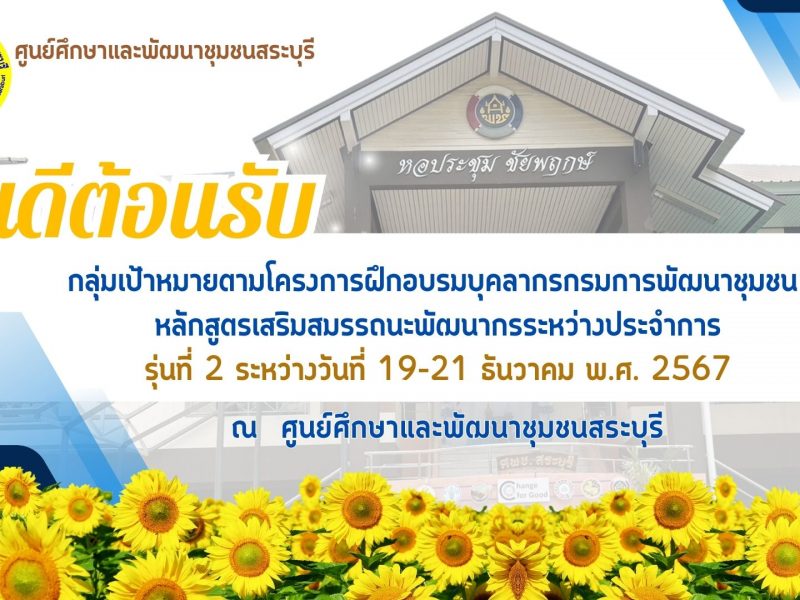 🌻✨ศูนย์ศึกษาและพัฒนาชุมชนสระบุรี. ยินดีต้อนรับผู้เข้ารับการอบรมโครงการฝึกอบรมบุคลากรกรมการพัฒนาชุมชน หลักสูตรเสริมสมรรถนะพัฒนากรระหว่างประจำการ กิจกรรมที่ 2 ฝึกอบรมบุคลากรกรมการพัฒนาชุมชน หลักสูตรเสริมสมรรถนะพัฒนากรระหว่างประจำการ ณ หอประชุมชัยพฤกษ์ ศูนย์ศึกษาและพัฒนาชุมชนสระบุรี🌻