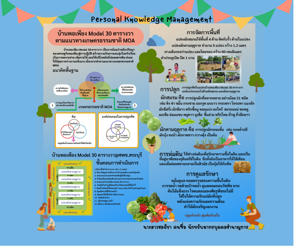 Infographic KM รายบุคคล บ้านพอเพียง Model 30 ต่ารางวา ตามแนวทางเกษตรธรรมชาติ MOA โดยนางสาวชลธิรา คนซื่อ นักทรัพยากรบุคคลชำนาญการ
