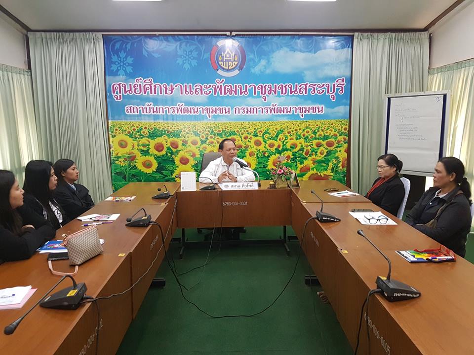ศพช.สระบุรี : วันที่ 8 ก.พ.61 นายสมาน พั่วโพธิ์ ผู้อำนวยการศูนย์ศึกษาและพัฒนาชุมชนสระบุรี พบปะและกล่าวต้อนรับผู้เข้าประชุม พลังเครือข่ายสัมมาชีพเคลื่อนที่ : CDD Mobile ระหว่างวันที่ 8-9 กุมภาพันธ์ 2561 ณ ห้องประชุม 1 อาคารอำนวยการ ศพช.สระบุรี
