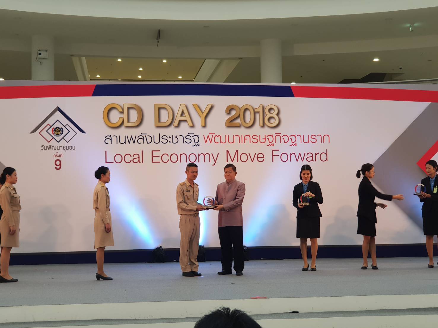 ศพช.สระบุรี : วันที่ 4 สิงหาคม 2561 นายสมาน พั่วโพธิ์ ผู้อำนวยการศูนย์ศึกษาและพัฒนาชุมชนสระบุรี พร้อมด้วยเจ้าหน้าที่ศูนย์ฯ ร่วมแสดงความยินดีกับ นายณฐกรธรรม แสนเสน่ห์ นักทรัพยากรบุคคลปฏิบัติการ ศพช.สระบุรี ที่ได้รับรางวัลบุคคลต้นแบบการส่งเสริมค่านิยมองค์กร ระดับดีเด่น กรมการพัฒนาชุมชน ประจำปีงบประมาณ พ.ศ. 2561 ในงาน มหกรรมสานพลังประชารัฐพัฒนาเศรษฐกิจฐานราก (CD DAY 2018) ณ อาคารรัฐประศาสนภักดี ศูนย์ราชการเฉลิมพระเกียรติฯ กทม.