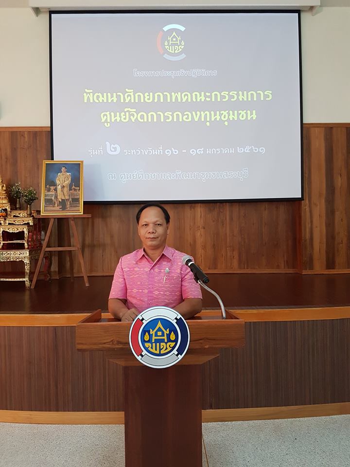 ศพช.สระบุรี : วันที่ 16 ม.ค.61 เวลา 09.00น. นายสมาน พั่วโพธิ์ ผู้อำนวยการศูนย์ศึกษาและพัฒนาชุมชนสระบุรี เป็นประธานเปิดโครงการฝึกอบรมกิจกรรมพัฒนาศักยภาพคณะกรรมการศูนย์จัดการกองทุนชุมชน รุ่นที่ 2 ระหว่างวันที่ 16-18 มกราคม 2561 ณ ศูนย์ศึกษาและพัฒนาชุมชนสระบุรี