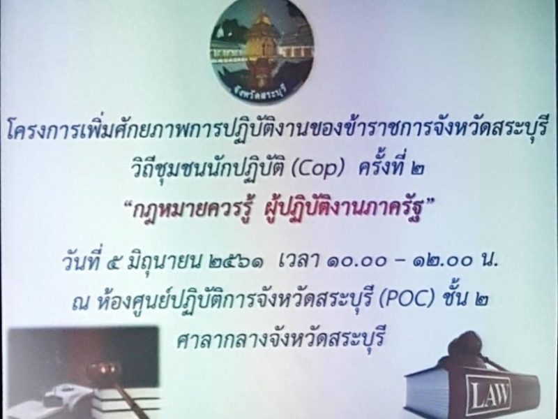 เข้าร่วมอบรมโครงการเพิ่มศักยภาพ การปฏิบัติงานของข้าราชการจังหวัดสระบุรี วิถีชุมชนนักปฏิบัติ