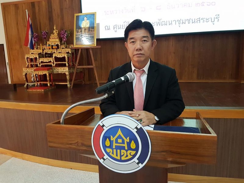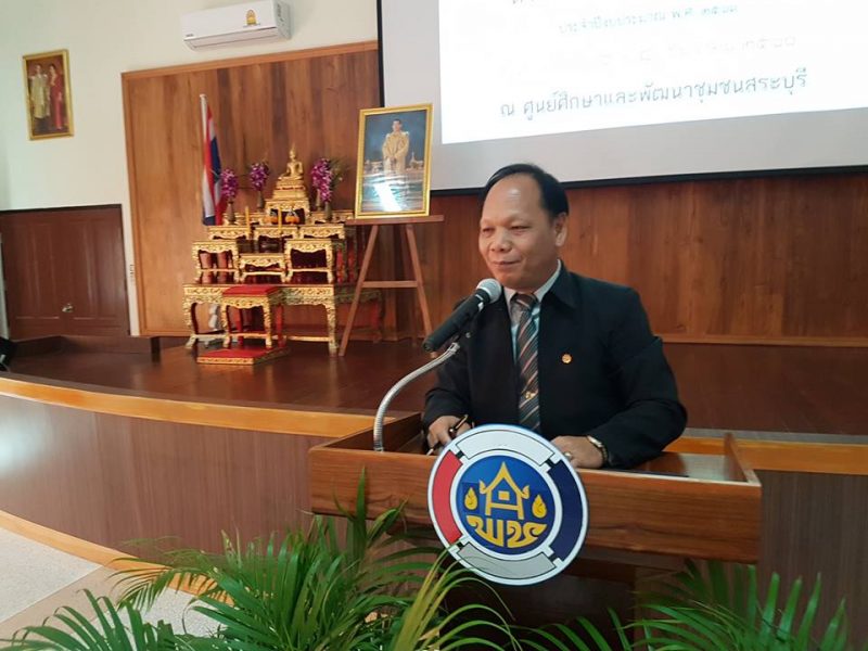 นายสมาน พั่วโพธิ์ ผู้อำนวยการศูนย์ศึกษาและพัฒนาชุมชนสระบุรี ร่วมพิธีเปิดตลาดประชารัฐคนไทยยิ้มได้